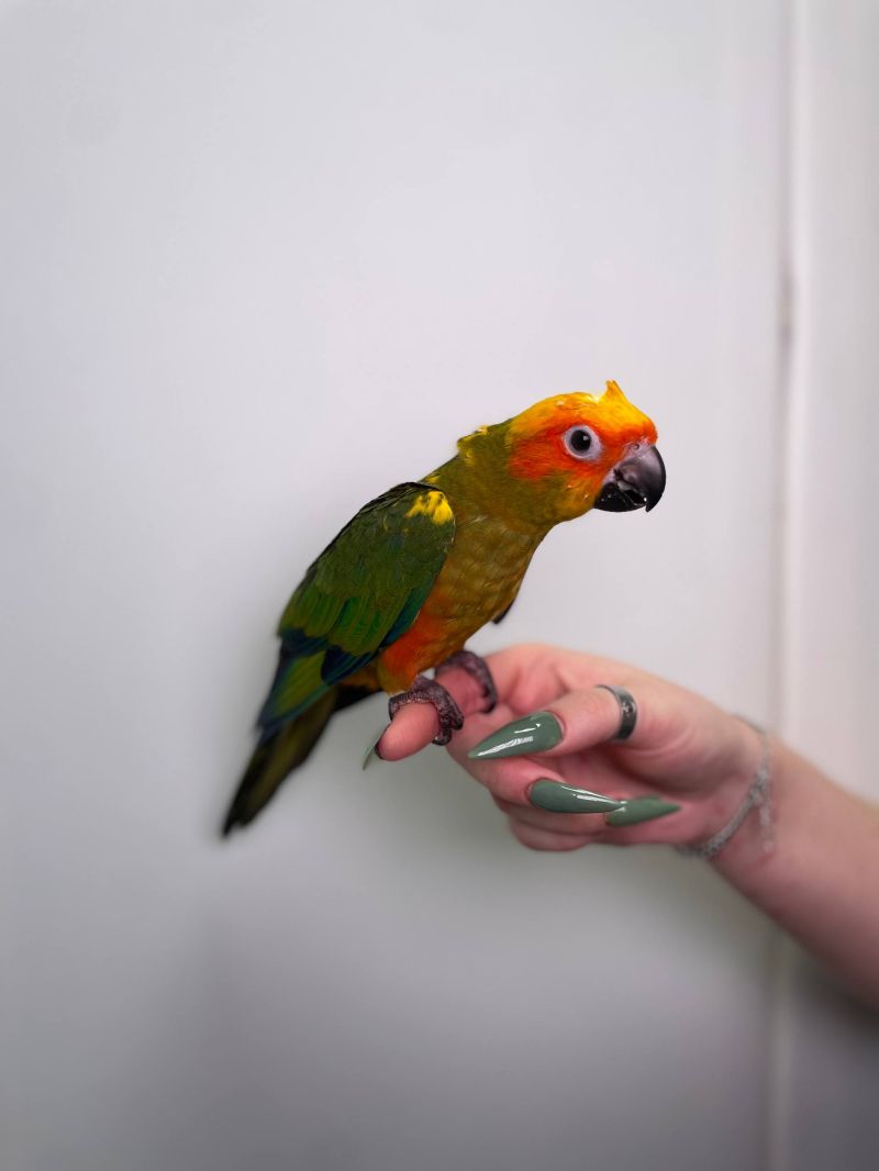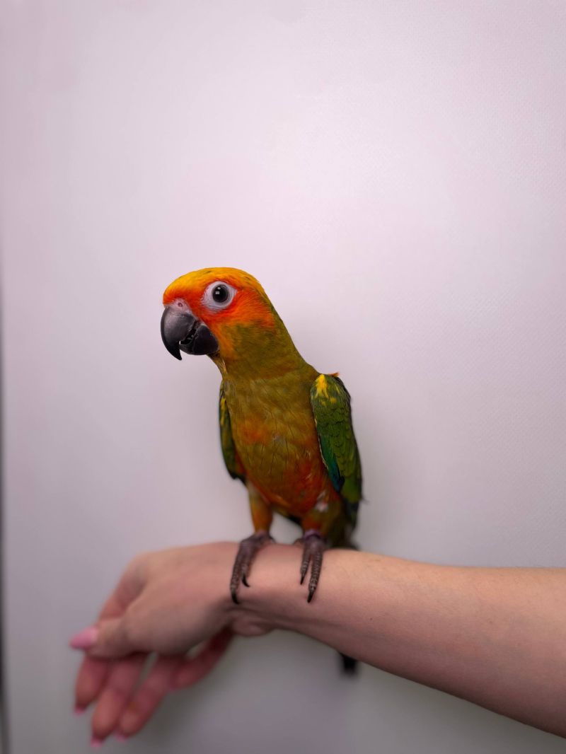 Попугай Аратинга, аратинга ручной папугай, солнечный аратинга