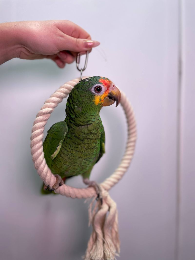 Жовтощокий амазон, червонолобий Амазон, грайливий розумний папуга