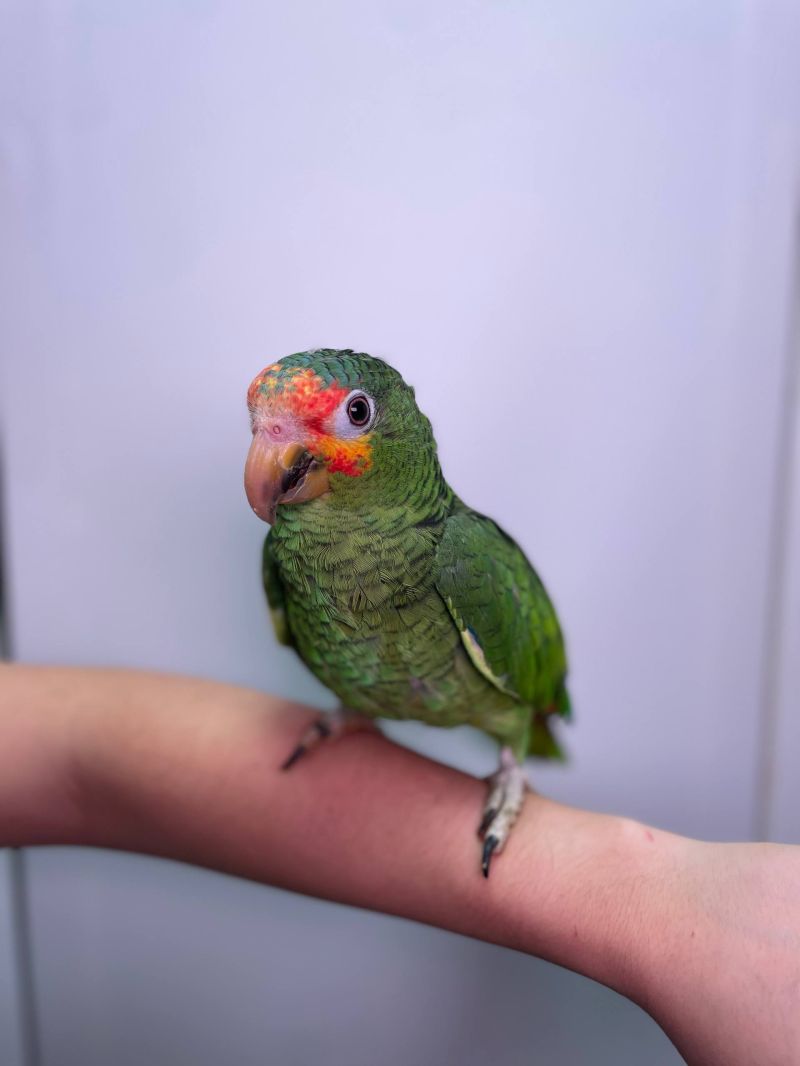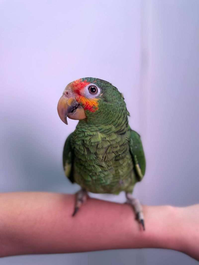 Жовтощокий амазон, червонолобий Амазон, грайливий розумний папуга