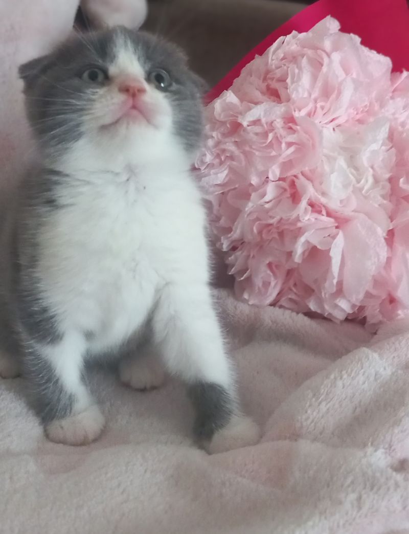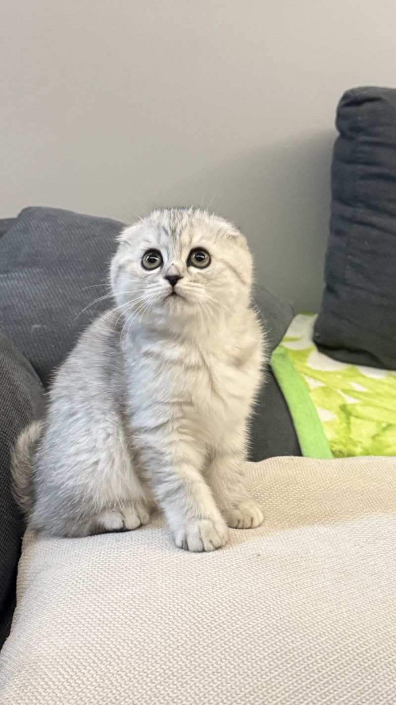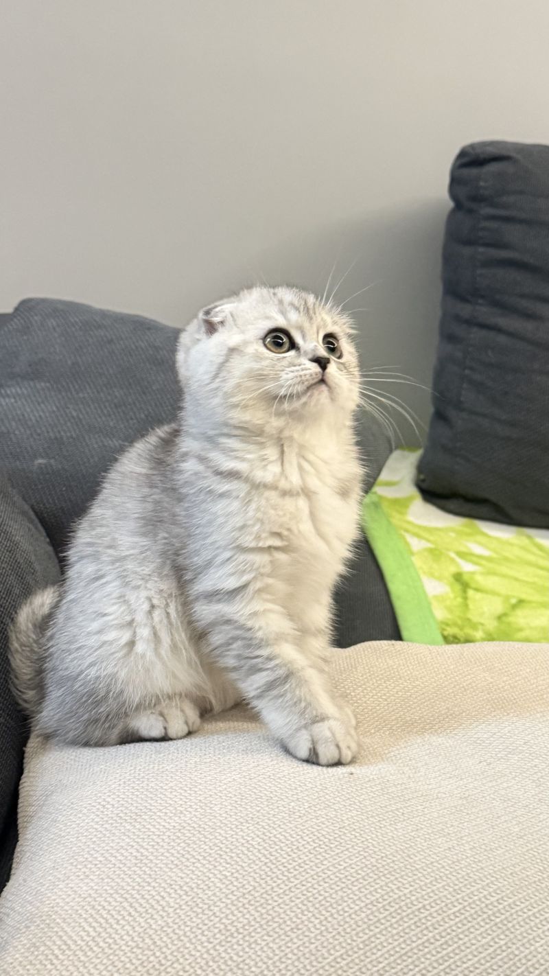 Шотландська висловуха кішечка, народилась 10.01.2026, активна, привчені до лотка.